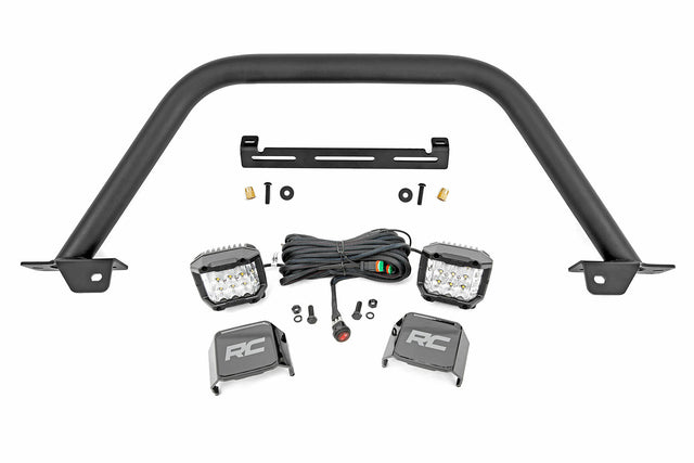 Rugged Style and Protection. Create a custom front-end look with the Rough Country Bronco Safari Bar. Rough Country's Bronco Safari Bar is just what you need. Offering protection from both on and off-road hazards it's perfect for tackling any adventure. Plus with multiple LED mounting solutions you can be sure you'll have plenty of light - no matter where you go. And if you're looking to add a winch the Safari Bar works perfectly with Rough Country's High Mount Winch Kit. This is the perfect accessory for off-roading enthusiasts who strive to go farther and higher every time they hit the trails. Built to Withstand. The Rough Country Bronco Safari Bar is the perfect accessory if you're looking to get your Bronco ready for an adventure. This tough bar is made from high-quality steel with 1 7/8" x .095" wall tubing to ensure maximum strength. The mounting flanges are also made from 7-gauge material so you know it's built to last. In addition it comes in a corrosion-resistant black powder coat finish to withstand even the most challenging terrain. Rough Country's Bronco Safari Bar is a perfect choice if you're tackling rugged trails or just want to add a little extra style to your ride. Installation and Warranty. This easy-to-install bar is perfect for anyone looking to take their Bronco to the next level. The Safari Bar mounts directly to your modular bumper using factory hardware and can be installed as a stand-alone unit. You also get peace of mind knowing that your purchase comes with a limited lifetime replacement warranty for manufacturer defects. With Rough Country's industry-leading warranty you can be sure that your Rough Country lift kit is protected from structural and workmanship damage after purchase.