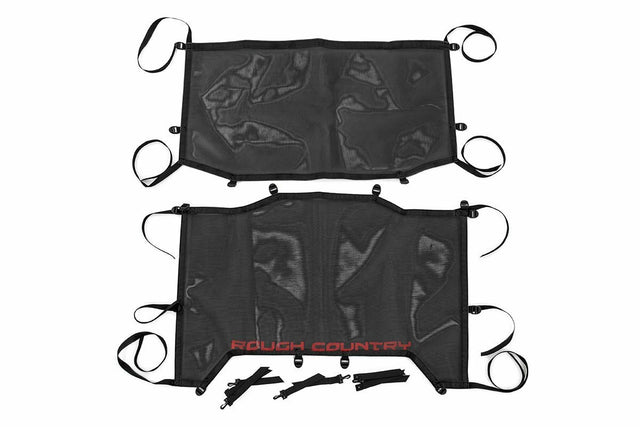 Get protection from the sun while still enjoying the breeze with Rough Country's Mesh Bikini Tops! These high-quality mesh tops block 70% of the sun s harmful UV rays giving you much needed shade and protection while still providing the classic Jeep top-down experience that so many owners enjoy! These easy-to-install Mesh Tops require no tools to install and can attach quickly and easily to your Jeep's roll bars. Featuring a durable commercial-grade mesh fabric and heavy-duty webbing these mesh Bimini tops are built to last for a long lifespan of good looks and protection.
