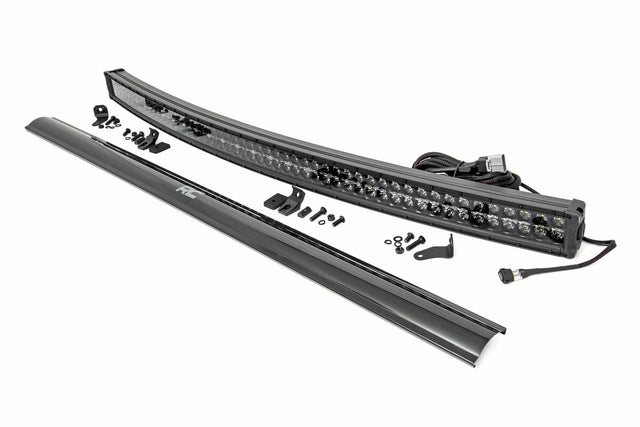 Command the Dark: Light up the night and stay on the trails longer with Rough Country's sleek 54-inch Curved Dual Row CREE LED Light Bar. This powerful light bar offers 46 800 lumens of illumination and 500 watts of energy-efficient output all housed in a stylish modern frame. Featuring 104 high-intensity 5-watt CREE LEDs it delivers superior brightness and durability for any adventure. The sleek black panel design complements vehicles with black accents such as grilles wheels bull bars or steps. Designed for all-weather performance this light bar comes with a durable die-cast aluminum housing ensuring maximum strength and heat dissipation. It s also backed by an IP67 waterproof rating providing reliable performance even in harsh conditions. This light bar contains 52 cool white daytime running LEDs for enhanced visibility and safety. Installation is made simple with the included premium flat-wound wiring harness complete with an on/off switch for easy operation. The light bar also features Rough Country's Light Bar Noise Silencers designed to eliminate unwanted hums whistles and wind noise typically found in mounted LED light bars. This light bar includes both end mounts and adjustable base mounts offering multiple mounting options for maximum versatility. A snap-on cover protects the lens while Moisture Breather technology reduces moisture build-up inside the light. Plus it s all backed by a 3-year warranty for peace of mind.