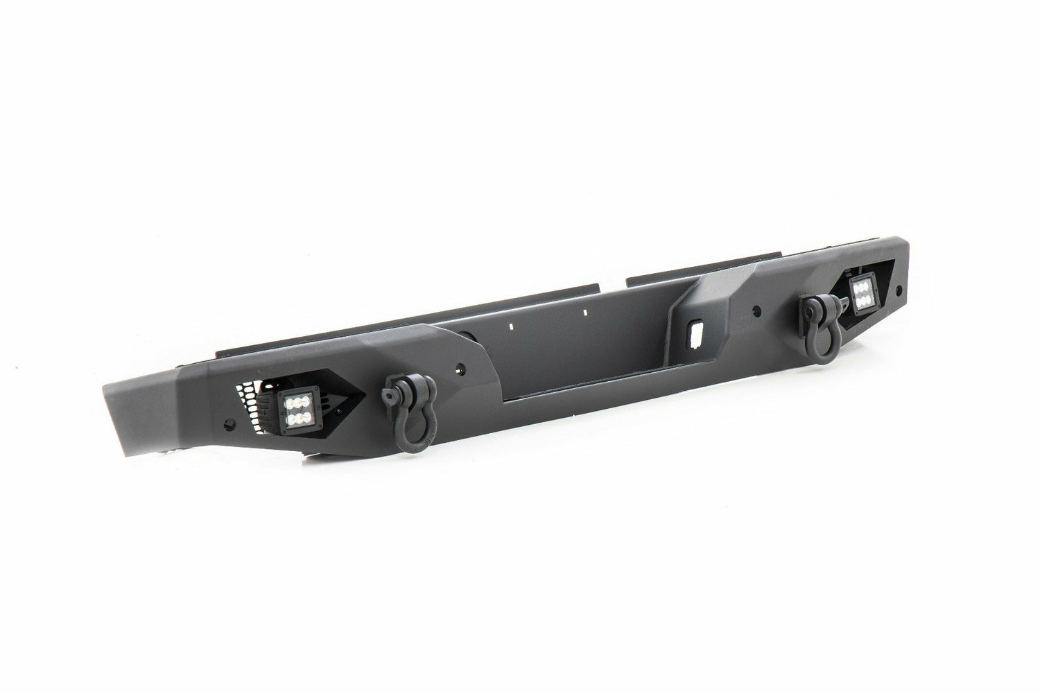 Beef up your JT s rear end with Rough Country's Heavy-Duty Rear LED Bumper! This stylish durable steel bumper offers unbridled protection for the rear of your JT while giving you increased tire clearance for off-road articulation. With bold angles and contoured curves this rear bumper is a true head-turner that s sure to get attention. Rough Country's Rear Bumper features a all-steel construction for serious durability and comes coated in a corrosion-resistant textured black powdercoat to withstand the elements. Features a set of 2" LED Cubes for rear illumination.