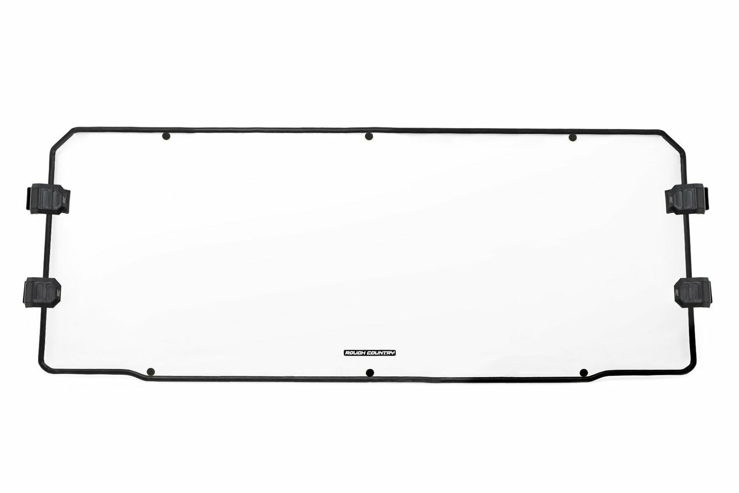 Added Protection and comfortability. Protect the occupants of your Polaris Ranger from off-road hazards such as rocks branches and other debris with Rough Country's Scratch-Resistant Windshields. UTV Windshields offer a clear visual of the trail ahead and allow for a much more comfortable outing! High-quality Polycarbonate Construction. Rough Country UTV windshields are constructed from thick polycarbonate material that is precision cut for a perfect fit. The polycarbonate material provides an ideal combination of clarity flexibility durability that outperforms glass acrylic and other windshield materials. Durable Scratch and UV Resistance. Each windshield is not only constructed from thick polycarbonate material but enhanced by a secondary AR2 hard-coating process. This process completely coats the windshield with a hardened scratch-resistant barrier. This treatment also provides the additional benefit of UV protection. Easy Installation. With a simple strap-on installation process installing a Rough Country windshield couldn't be easier. Within 15 30 mins you can be ready to hit the trails. Limited-Lifetime Replacement Warranty. Rough Country's Scratch-Resistant Windshields are backed with a limited lifetime replacement warranty towards manufacturer defects. As such the product is protected from structural and workmanship damage after the date of purchase. With our industry-leading warranty give yourself peace of mind when using Rough Country's Suspension products!