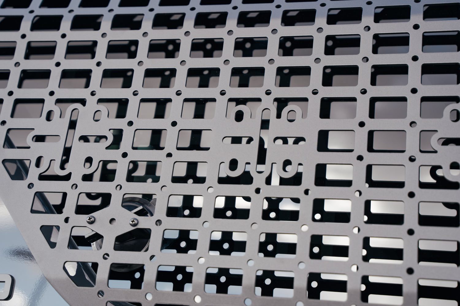 Our Molle Panels install to Rago’s Roof Racks for additional mounting options. They feature a molle design, integrated Rotopax mounts, and slots for carriage bolt mounting. They bolt-on to our roof racks, and they seal to the rear windows with the included RAM Mount Suction Cups. The panels are made from steel, and are finished in a 2-stage hammer black powder coat. Made in the USA.