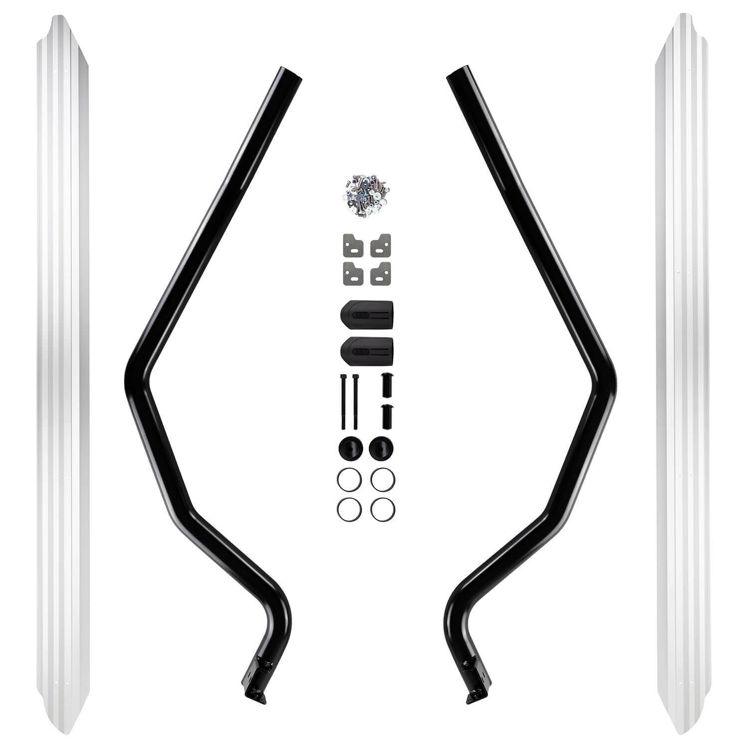 Side rail and combination steps to protect the front quarter panels and lower sills. The integrated step offers improved vehicle access. While they offer an excellent barrier against rock ledges they are not considered a true rock slider that might be required for aggressive rock crawling.