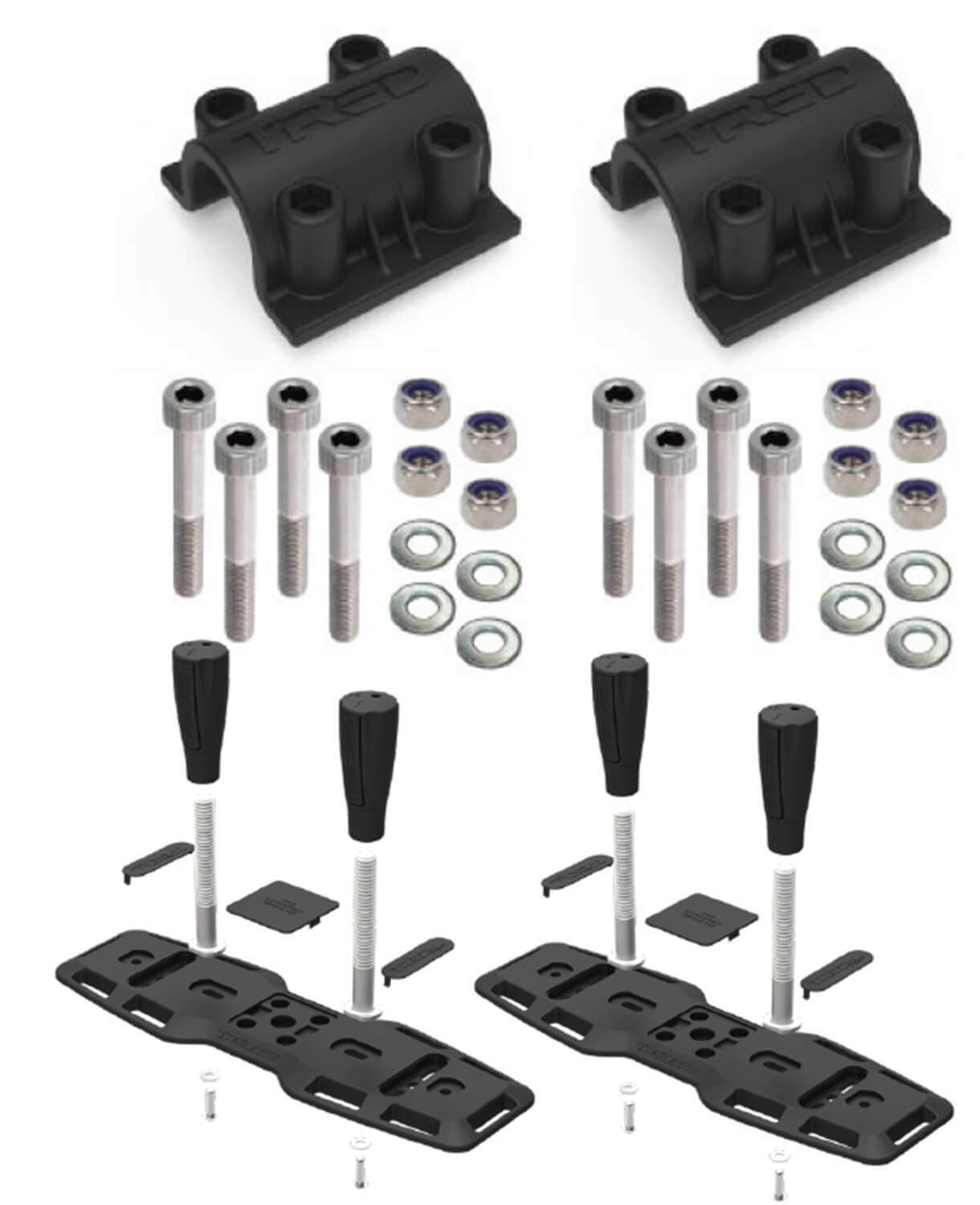 TRED has released two new mounting adapters allowing for either a side-mount or flat-mount option when used with the TPMK mounting plate. The TRED Mount Adapters are made from glass reinforced nylon a similar material to the famous ARB TRED PRO Recovery Boards but containing a higher concentration of glass to improve strength. This material provides a lighter-weight option and a more flexible solution for keeping your TRED Recovery Boards within easy reach and out of the way of cargo storage on your vehicles roof rack. The TRED Mount Adapter system also includes all stainless hardware for whatever mother nature can throw at it. The TRED Flat-Mount Adapter was specifically developed to be used in conjunction with the TRED Mount Baseplate (Part Number TPMK) for mounting TRED Recovery Boards to the 1-inch crossbar support tube under the mesh of your roof rack. If there is no mesh on the roof rack additional bracing might be required to eliminate twisting and the supplied hardware might need to be shortened for a neater finish.
