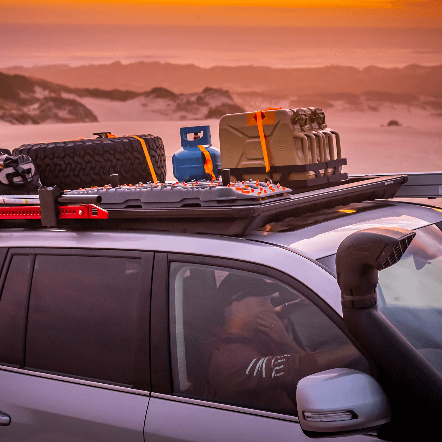 ARB's BASE Rack mount kit for the Land Cruiser 200 Series uses proven attachment methods to keep the roof rack as close as practical to the vehicle. It includes a wind deflector and is compatible with the rear OE mounted antenna. BASE Rack specific blade brackets suit the 61 x 51 in (PN 1770020) BASE Rack. By incorporating a dovetail extrusion around both the full perimeter and along each edge of the internal beams the BASE Rack provides endless mounting and attachment options. Adding removing and repositioning accessories and roof loads is quick and easy with the BASE Rack's dovetail system making it easier to install and remove individual items without disturbing the whole load. Plus unlike traditional roof rack channels the BASE Rack dovetail extrusion won't collect dust and debris. Each BASE Rack accessory or fixture attaches to the rack with a simple clamp mount including larger hardware such as Hi-Lift Jack mounts rollers recovery boards and even a BASE Rack custom light bar.