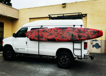 Storage is at a premium on van builds. Aluminess solves this problem with our all-aluminum surf and paddle board carrier. Mount your paddle or surf board using one of our surf poles driver-side ladder and a pair of surf hooks.