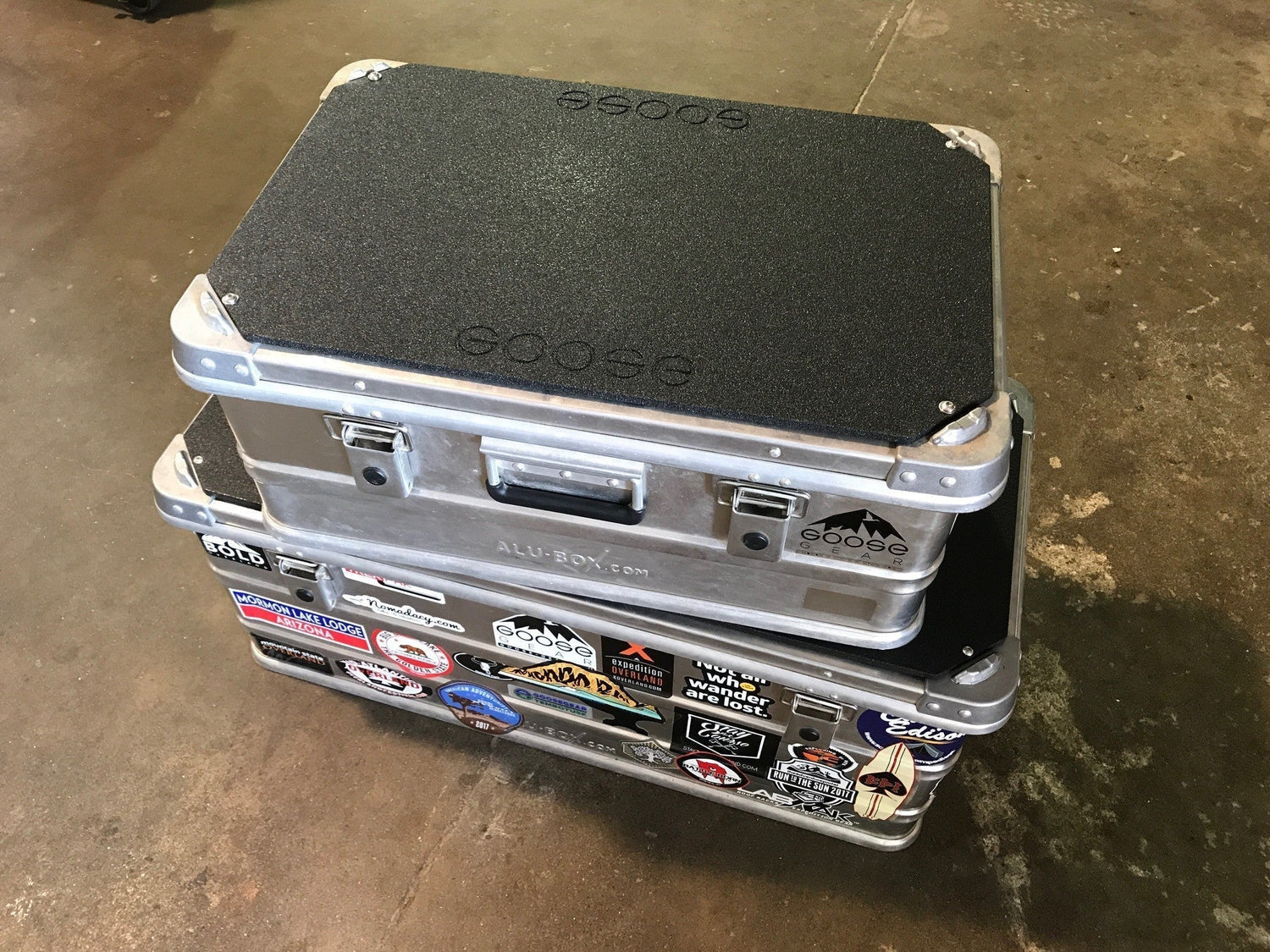 The Goose Gear Alu-Box Top Plate Kit takes the lightweight and rugged Alu-Box aluminum storage boxes to the next level. It turns them into a solid step and gives them a solid top of sitting upon at camp. It also makes a great table when sitting around the campfires.