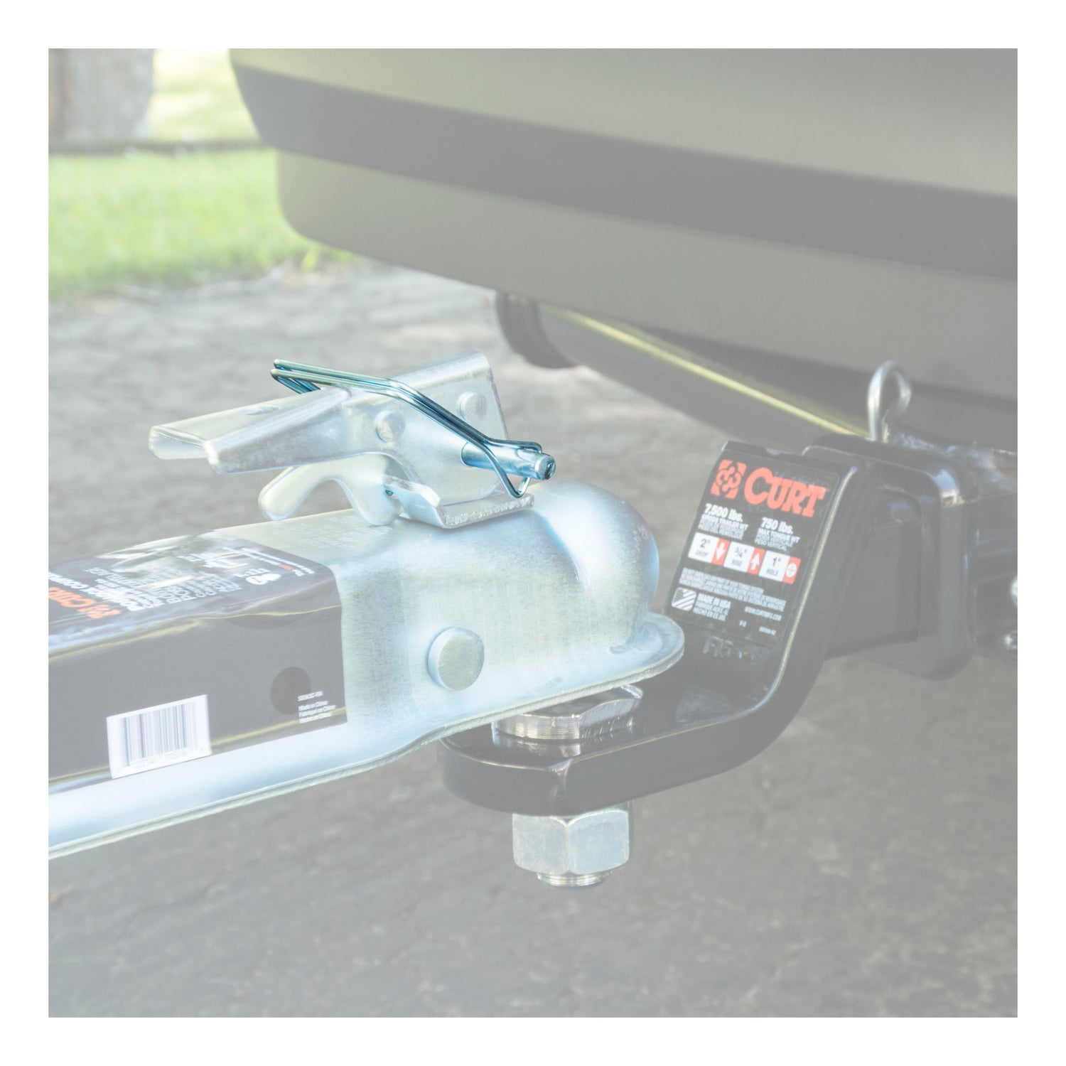 CURT safety pins go beyond the simple function of keeping your coupler latch secure. They are constructed from quality materials and have a universal design that allows them be used for a variety of purposes in your towing setup. CURT safety pins are made from solid steel to provide more than enough strength to keep your trailer coupler latched down tight. The zinc plating that we use to finish our safety pins offers excellent protection against rust and corrosion. This is necessary for any trailer because of its frequent exposure to the elements. The user-friendly design of our safety pins allows them to be easily handled while maintaining effective security. This safety pin has a pin diameter of 1/4". CURT safety pins can also be purchased with a 12" chain attachment to mount onto your trailer coupler and prevent the safety pin from being misplaced. Use CURT safety pins for securing trailer couplers, jacks, caster wheels and more. When you couple your trailer to your vehicle, nuts and bolts just do not cut it. Secure your towing equipment right with a safety pin from CURT.