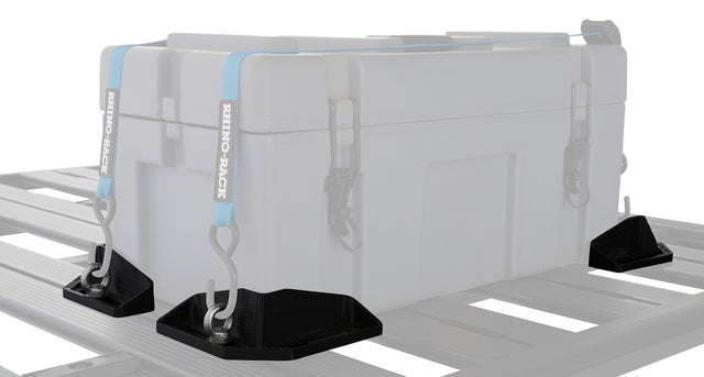 Rhino-Rack Pioneer Cargo Corners have been designed to provide userswith a secure and adaptable anchor point for large bulky items. Whether you are needing to bring along an extra Esky or tool box, look no further than our Cargo Corners to keep your items in place. When fitted correctly the Corners wedge against the side of your gear, and you can strap and secure them using the integrated eye bolts as anchors. This product is suited to Pioneer 5 Series Platform, Pioneer Trays and Pioneer Tradies. They are made from diecast aluminium and finished with powder coating for the ultimate corrosion resistance.