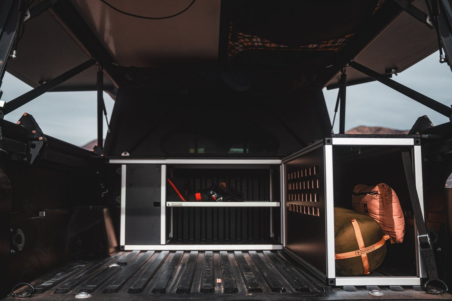✔ Bed Cargo Module – A secure, strap-in storage solution utilizing factory anchor points. Compatible with optional Step 22 Stingray Flat Box bags for enhanced organization.