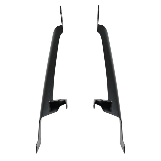 Westins Pillar LED Light Mount is set up for a 50" LED Bar at the upper windshield level and post mount lights at the pillar level. They are made of heavy-duty 7 gauge steel and feature visible black stainless fasteners with a textured black powder coat finish.