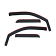Wade In-Channel Wind Deflectors are a quick and quality solution to reducing wind, noise, heat, and glare without compromising the entry of fresh air when windows are rolled down slightly. They are easily installed by inserting the flanged edge into the directly window channel and secured with 3M automotive grade tape. Wade Wind Deflectors promote the circulation of fresh air while minimizing its volume and strength as it re-directs it up and into, or out of the vehicle. Their sleek design deflects wind and noise from entering the vehicle for a more pleasant ride any time of year. They are made from high-gloss smoke acrylic, and have transparency, so, visibility is never obstructed.