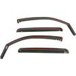 Wade In-Channel Wind Deflectors are a quick and quality solution to reducing wind, noise, heat, and glare without compromising the entry of fresh air when windows are rolled down slightly. They are easily installed by inserting the flanged edge into the directly window channel and secured with 3M automotive grade tape. Wade Wind Deflectors promote the circulation of fresh air while minimizing its volume and strength as it re-directs it up and into, or out of the vehicle. Their sleek design deflects wind and noise from entering the vehicle for a more pleasant ride any time of year. They are made from high-gloss smoke acrylic, and have transparency, so, visibility is never obstructed.